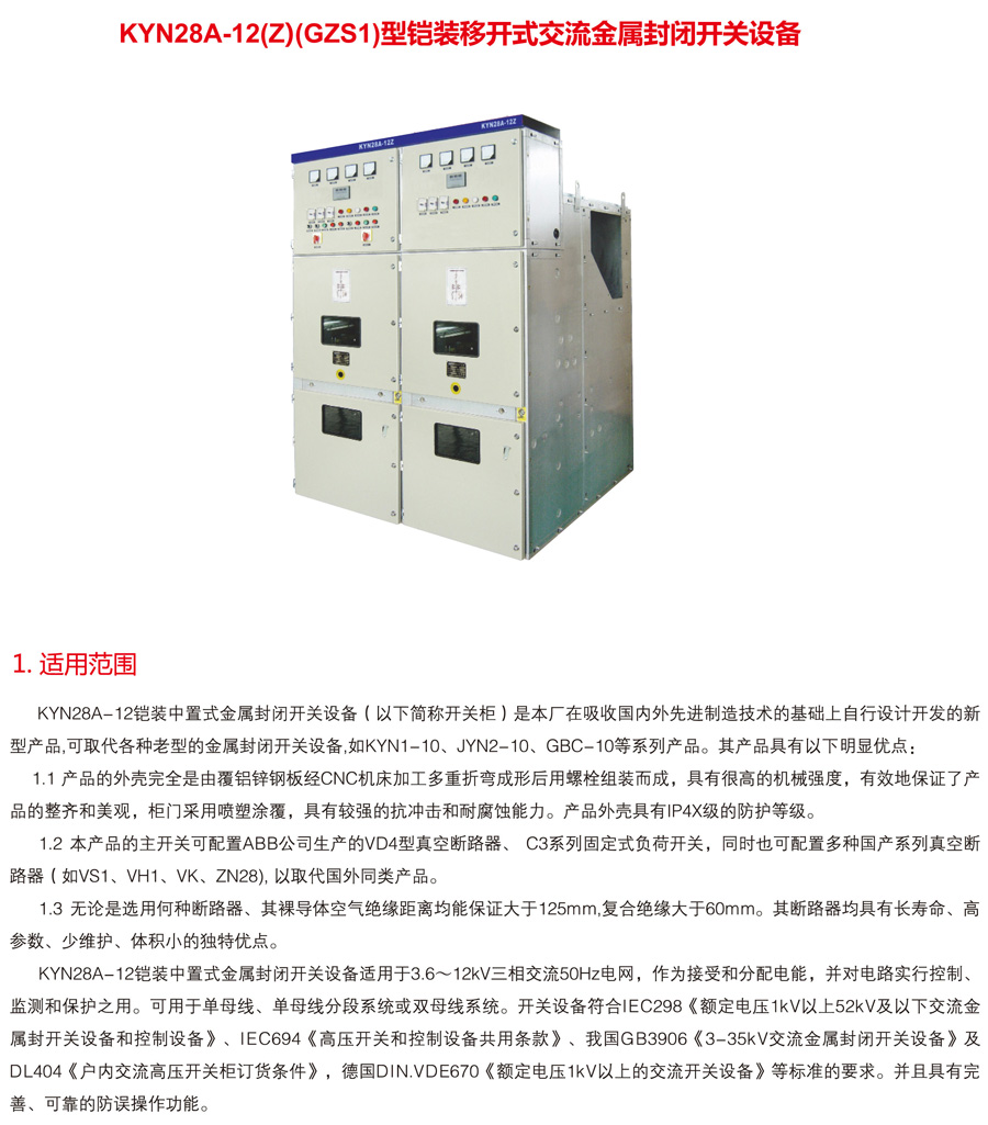 KYN28A-12(Z(GZS1)型铠装移开式交流金属封闭开关设备