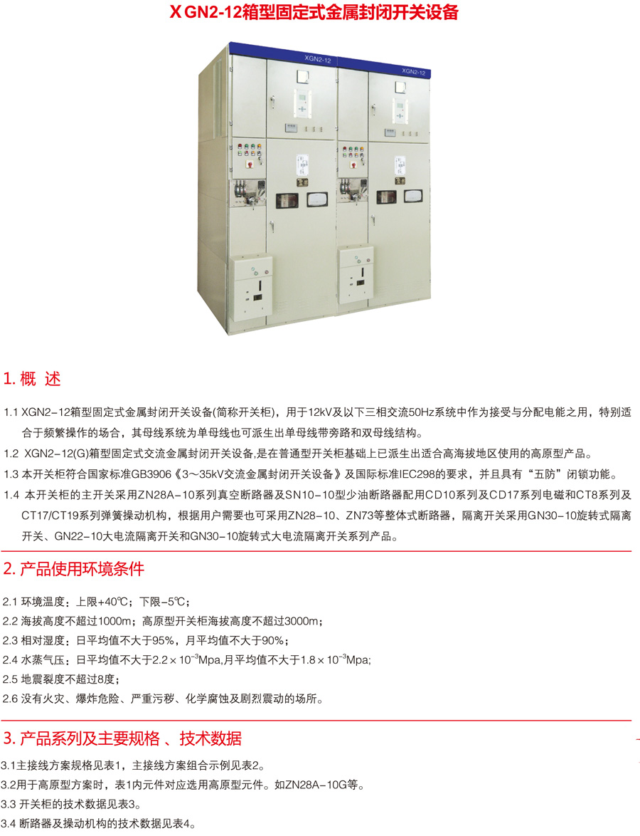 ⅩGN2-12箱型固定式金属封闭开关设备