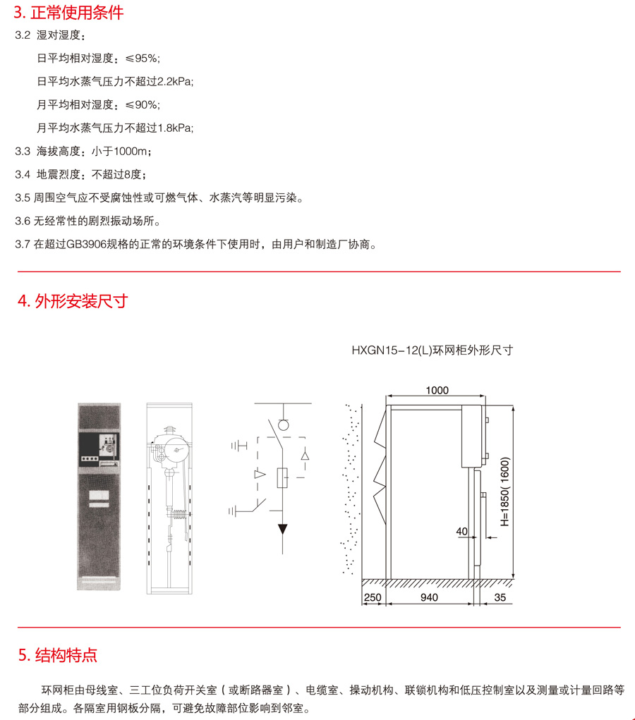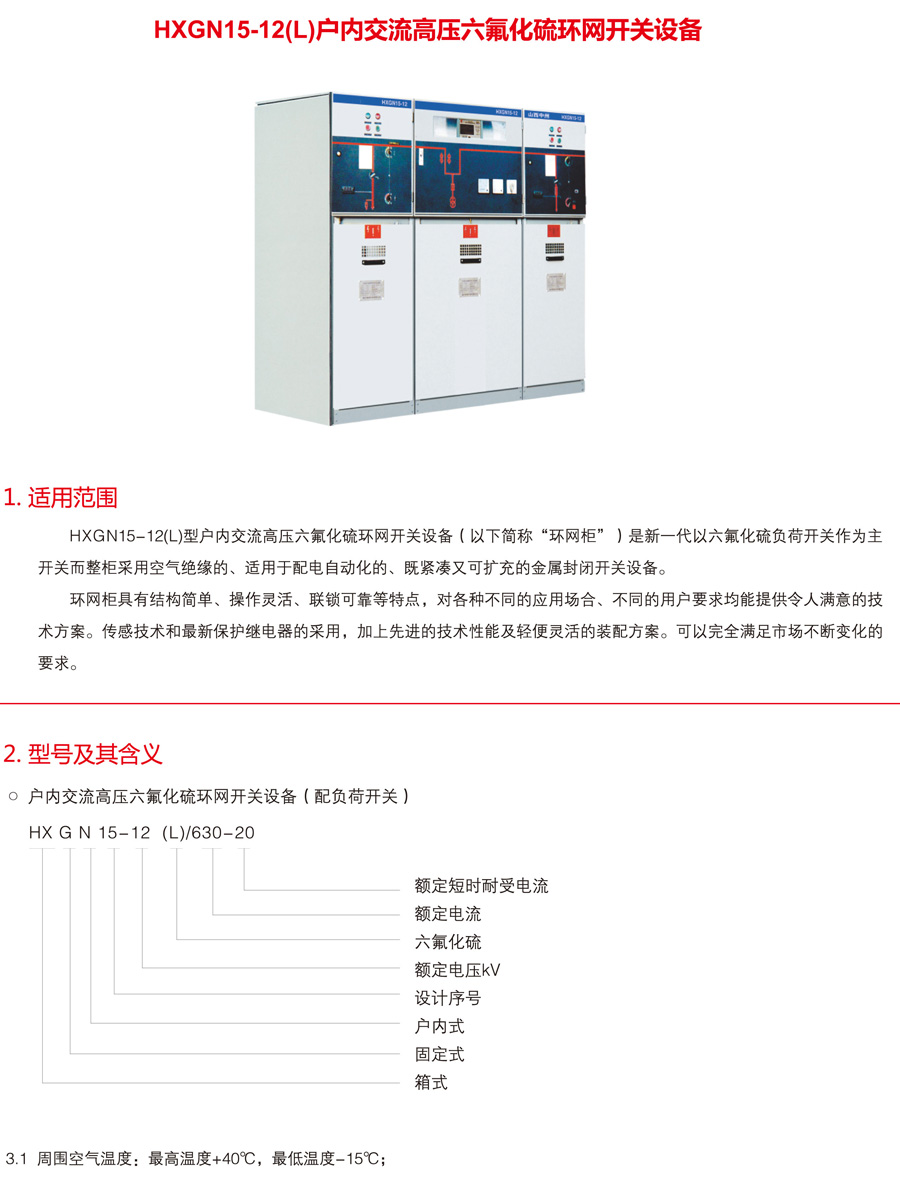 HXGN15-12(L)户内交流高压六氟化硫环网开关设备