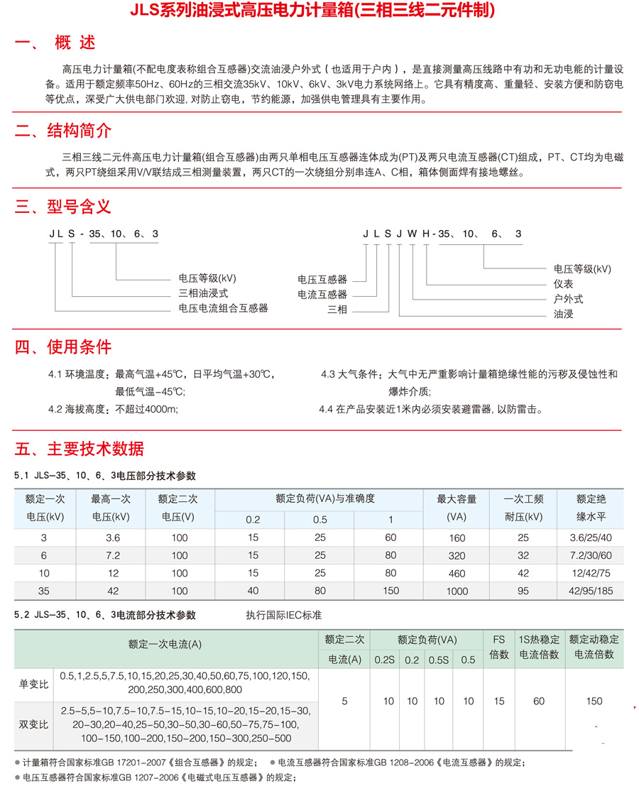 JLS系列油浸式高压电力计量箱(三相三线二元件制)