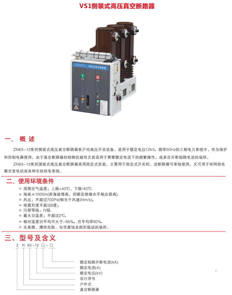 ZN63(VS1)-12系列户内高压交流真空断路器