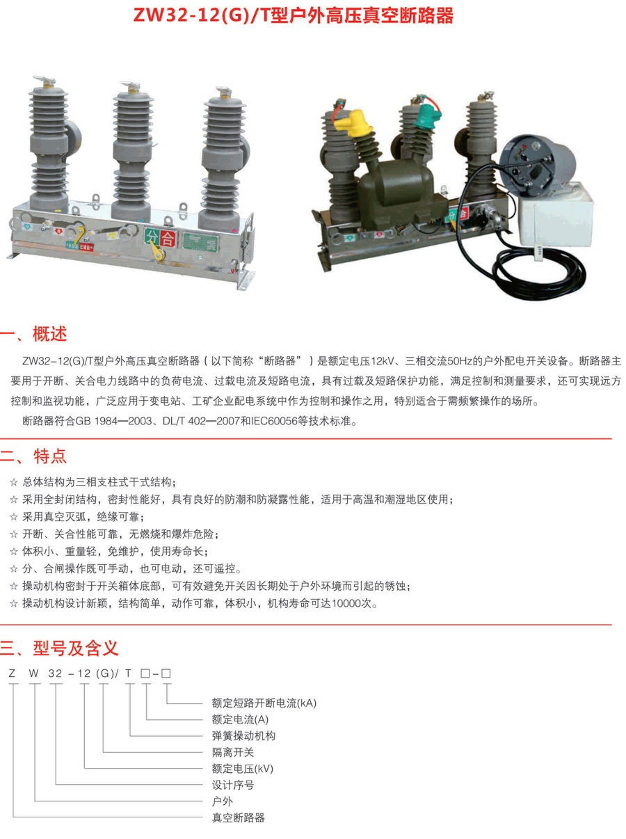 ZW10-12(G)/T型户外高压真空断路器